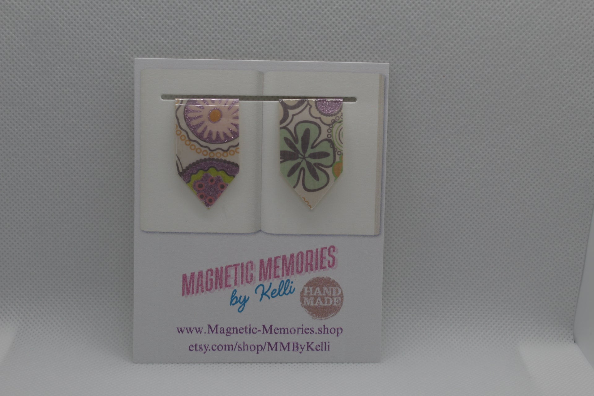 Elevate your reading and planning with our handmade magnetic bookmarks—crafted with designer paper, carefully laminated for durability, and precision-cut for a sleek finish. Each bookmark features strong, high-quality magnets that securely clip to your pages without slipping or damaging your paper. Whether you're marking your spot in a book or using them as stylish bookmark bullets in planners or journals, these bookmarks combine functionality with eye-catching design. A perfect blend of beauty and practicality for readers, writers, and organizers alike.