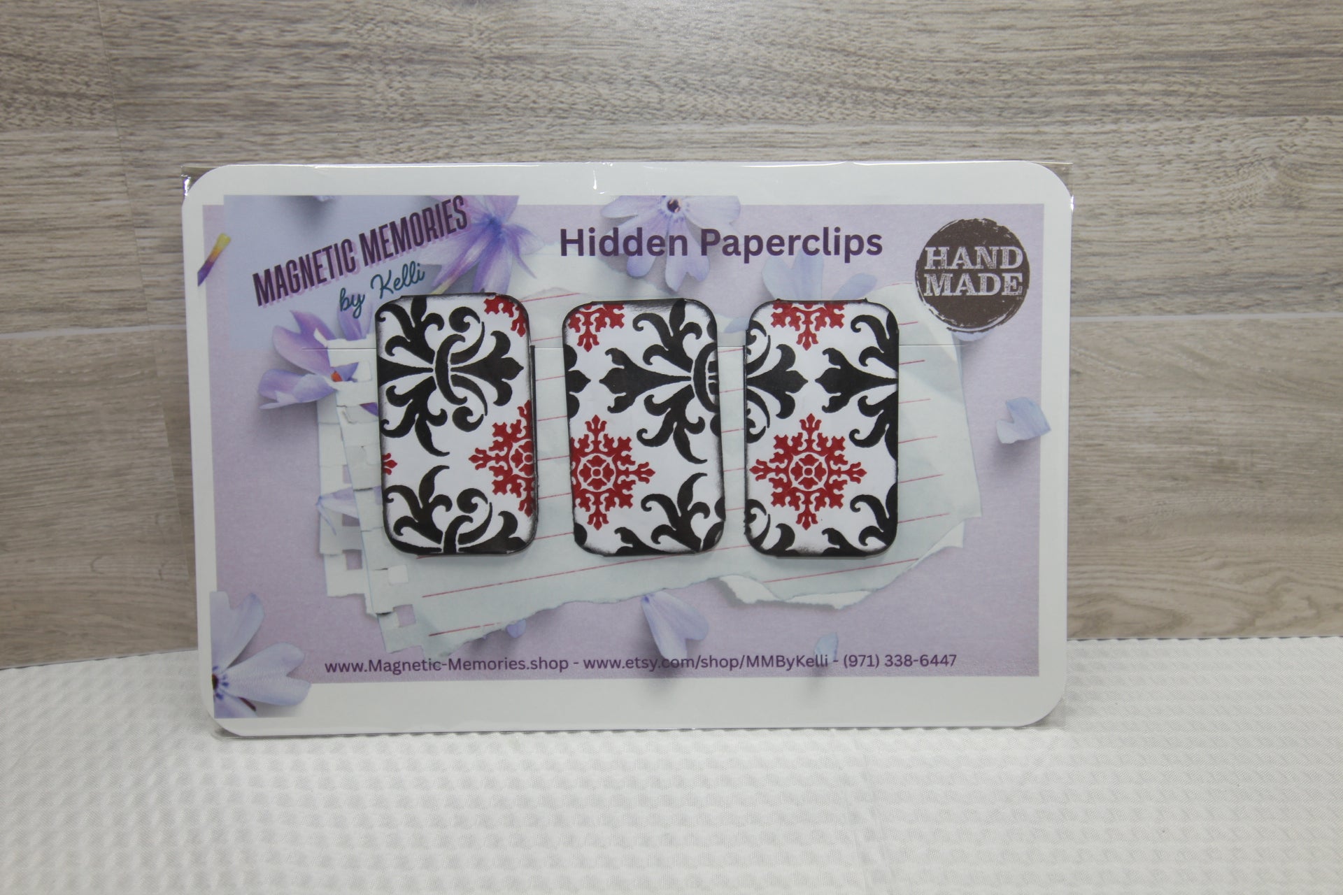 Add a creative touch to your books, journals, and papers with our handmade hidden paperclips. Each piece is crafted on premium designer paper and attached to sturdy jumbo paperclips—hand cut, hand inked, and hand glued with care. Designed to slide smoothly onto pages while keeping the clip hidden behind beautiful patterns, these clips are both functional and decorative. Perfect for school, planners, office use, or thoughtful gifts, they’re a charming way to stay organized in style.